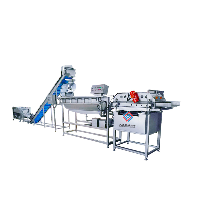 蔬菜清洗加工生產線/流水線適用于凈菜加工配送中心、食堂加工、中央廚房和企業單位食堂的葉菜的前處理清洗工作,能夠完成挑選、去雜物、切割、輸送、風干瀝水和脫水的功能。