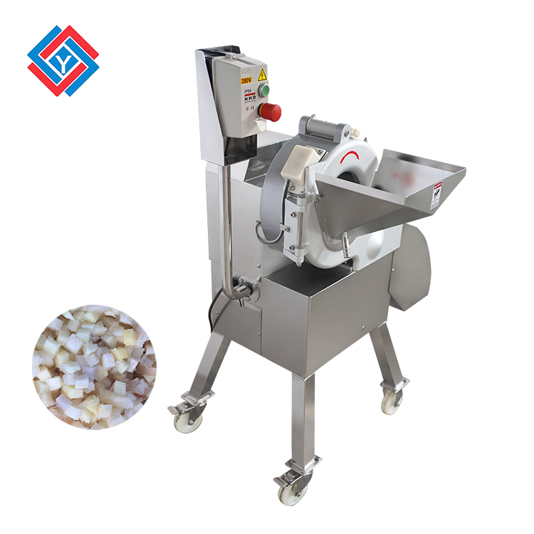 果蔬切丁機是將根莖類、球莖類蔬菜例如蘿卜、芋頭、馬鈴薯、番薯、洋蔥、木瓜等切割成丁或者條狀的機器,配合流水線能夠對新鮮果蔬進行分級整理、清洗、切分工作,使得產品能夠保持新鮮的狀態,替代了傳統人工切割加工勞動強度大、作業效率低、加工成本高的問題,提高了加工效率,并且避免果蔬在加工過程中受到污染的問題。